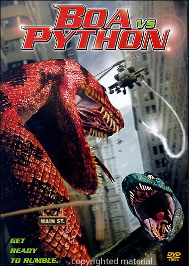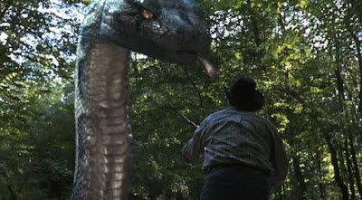 Basic plot as follows (not that it really matters…), dumb rich hunter orders a massive snake delivered to America, dumb rich hunter rounds up his mates to go hunt it, massive snake escapes, CIA get involved, CIA er… decide to use another snake to help them get the first snake, people get snaked, smakes fight.