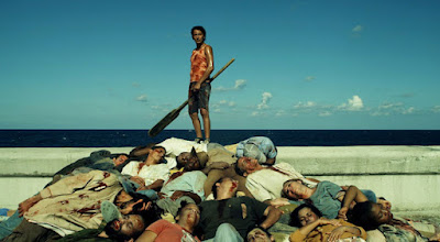 The gore’s good though! Some nice splatters, severed limbs and oozing wounds show just what fun you can have with real physical special effects. And, even if it is episodic, some of the episodes are so damn good that you can forgive them entirely: one scene sees the heroes naked, unarmed and handcuffed to a zombie in the back of a van… There are lots of wry jokes at the Cuban regime and it’s claims - the zombies are referred to as dissidents throughout - and one of the characters carries both a Cuban and a US flag to wave depending on who wins. It’s also suitably cavalier with its characters: several central characters meet gruesome ends and, at the beginning at least, the gang seem to accidentally kill as many humans as they do zombies (accidentally shooting an old lady with a harpoon…).