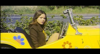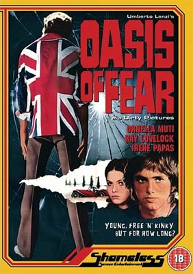 Oasis of Fear (my favourite of the many titles) is an inconsequential but fun little film. Ingrid and Dick’s porn-peddling business goes, rather predictably awry and they find themselves, after a run in with the polizia, on the run towards the border in their unfortunately distinctive car (Seriously: if you’re doing something illegal, would you operate from a yellow sportscar with stencilled flowers? No, neither would I). After a series of still-more unfortunate encounters, the pair find themselves without petrol, money or food, sneaking into the house of a rather glamorous and apparently lonely woman for some sustenance.