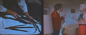 Although the killer has a bit of a thing for stabbing blondes, and mostly just after they’ve come from the shower, the film isn’t sexy in the slightest. This doesn’t stop it producing what is possibly an all time classic line though: the secretary lady, who is having a bit of a fling with the doctor/dentist/security man slyly says: