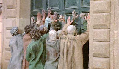 Frustratingly boring characters aside, the zombification is quite fun. The make-up is somewhat heavier than normal (in the vein of the Spanish conquistadores of Fulci’s Zombi 2) but they are pleasingly grotty with maggots and all. The gore is a little thin on the ground perhaps, but the bits we do get are fairly satisfying. And THAT breast-feeding moment needs no more elaboration…